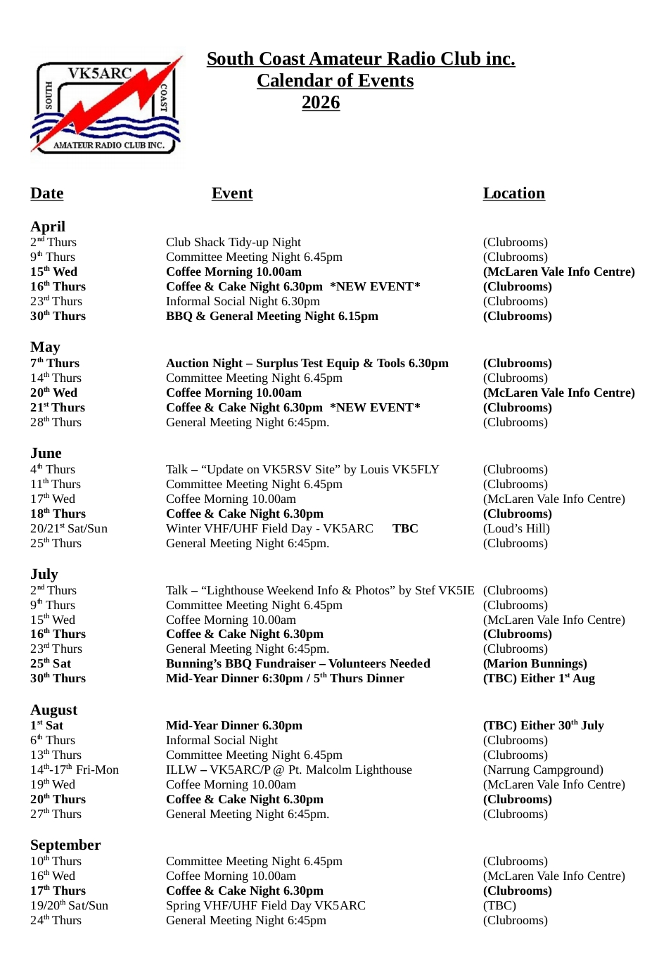 Members Note: SCARC 2026 AGM held on Thurs 26th November.
