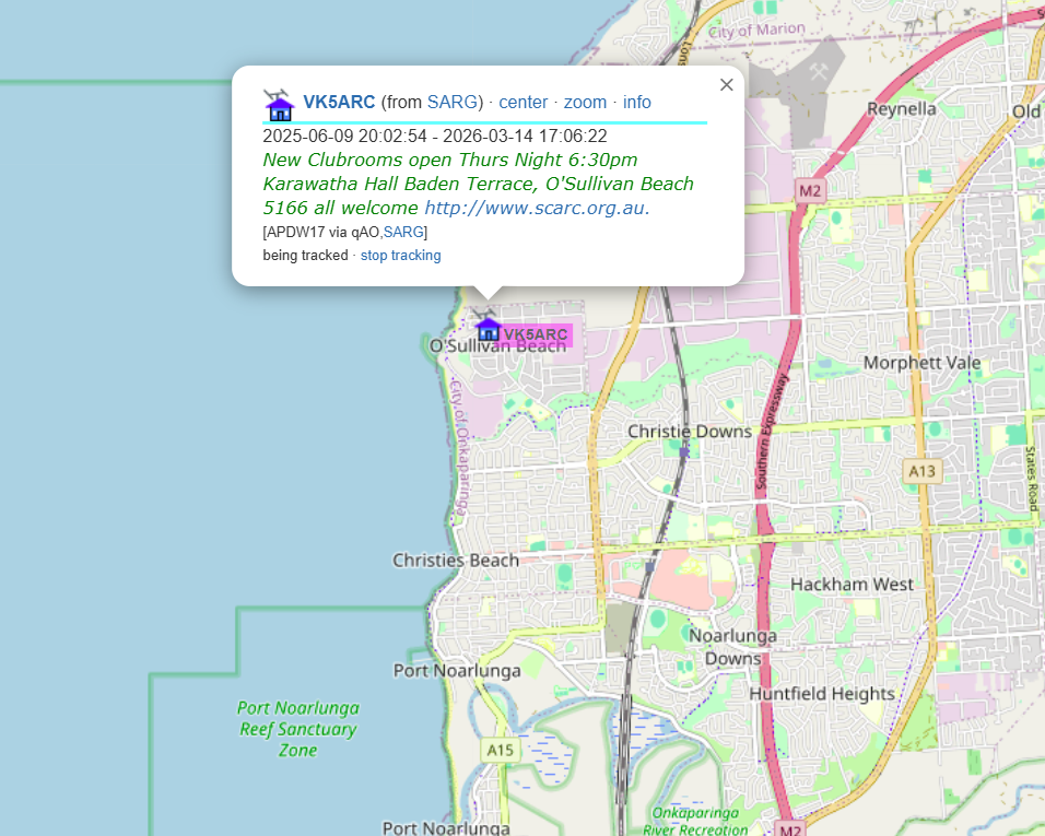 The SCARC meets every Thursday evening at the Clubrooms at Karawatha Hall Baden Terrace O'Sullivan Beach, from 7:00pm till usually 9:00pm.